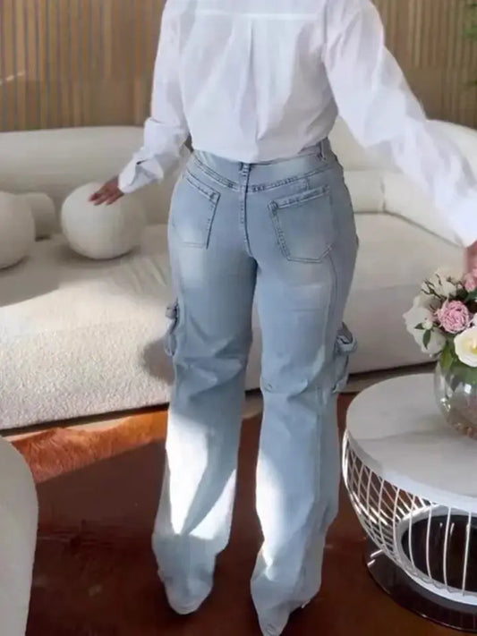 Turn heads in our Patchwork Cargo Accordion Jeans — the bold, utilitarian statement pie...