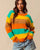 Brighten your wardrobe with this multi-color stripe sweater that delivers bold personality and effortless style. Designed with ribbed detailing for added texture, this piece blends playful color with a modern, elevated look. Its soft, cozy knit makes it perfect for layering during cooler months while still offering year-round versatility. Whether paired with denim, leggings, or layered over a collared shirt, this sweater instantly upgrades your outfit. A vibrant, confident statement piece—made for women who dress with intention and influence.